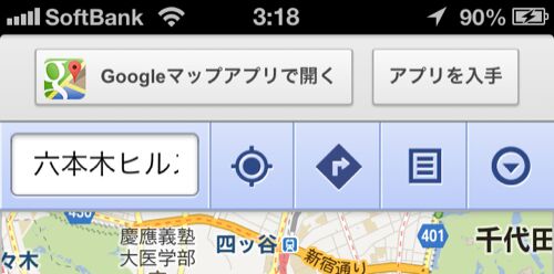 (追記) この記事を書いた後に改めてiPhoneのSafariでGoogle Mapsを開いてみたら画面上部に「Googleマップアプリで開く」の文字が… いつの間に!! もしかして最初から有った?(^_^;)表示されない場合は一度、Google Mapsの検索欄をタップした後に下にフリック…